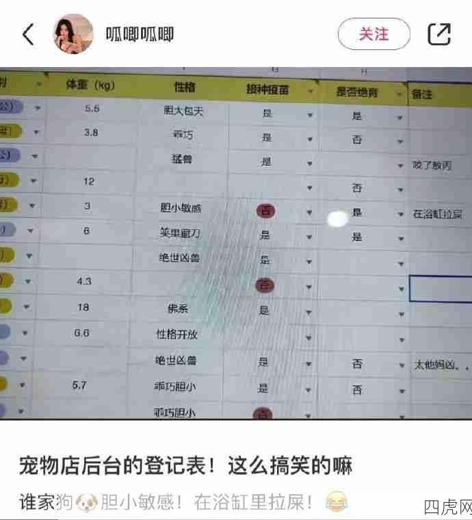 宠物店的后台登记表也太好笑了@一叶莫笑南山秋