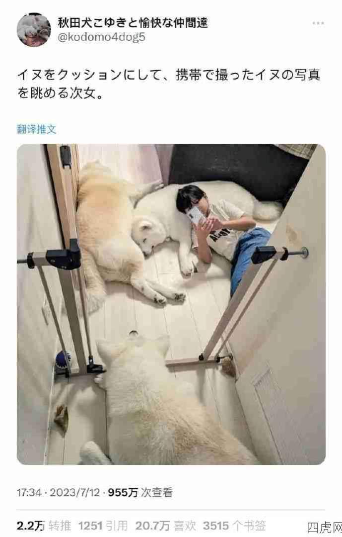 理想生活:躺在狗子身上看手机里拍的狗子照片@无敌宝仔