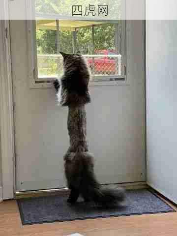 一只因为生病被剃了毛的猫,这是它直立在门边的样子@小范爱小安